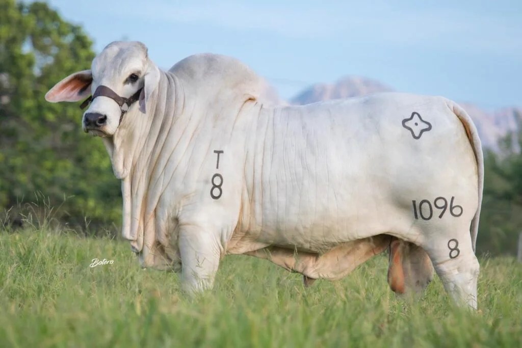 Un toro de buen tamaño, color gris claro, con muy buen pigmento de piel, un dorso fuerte y amplio, con un esqueleto sobresaliente, amplio adelante y atrás, hijo del Jacob 678, muy bueno para mejorar tamaño.